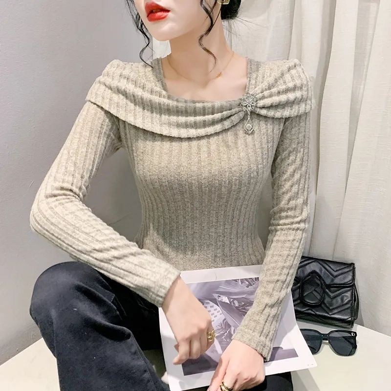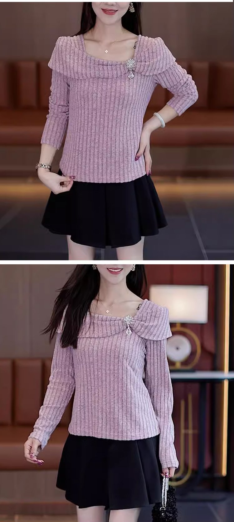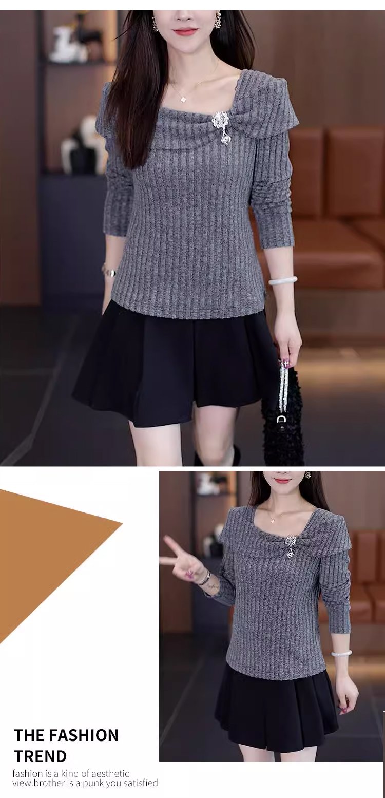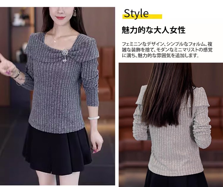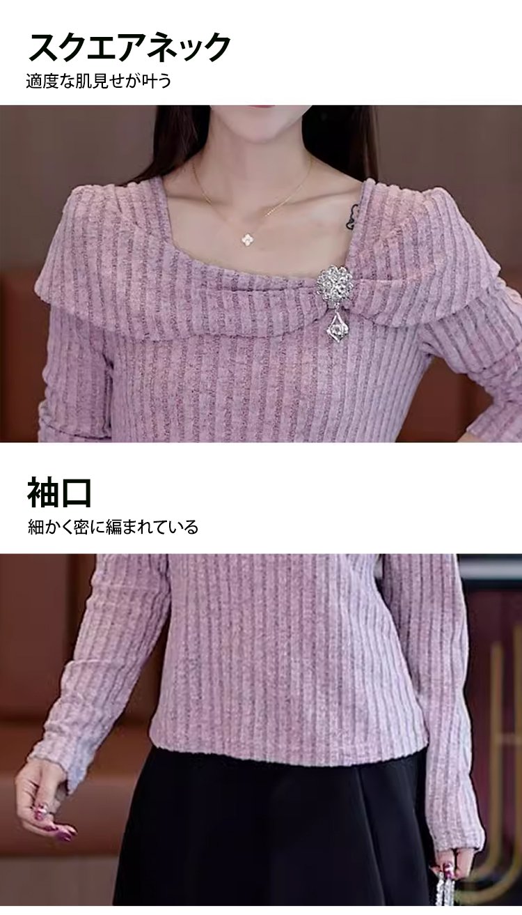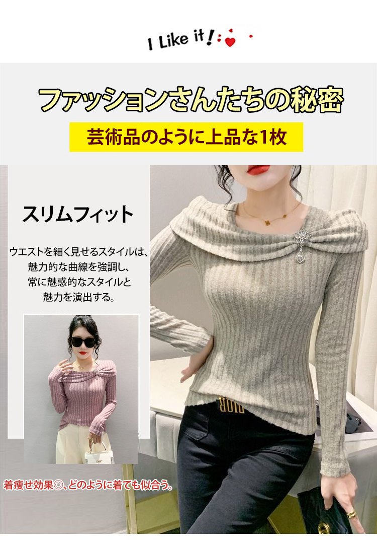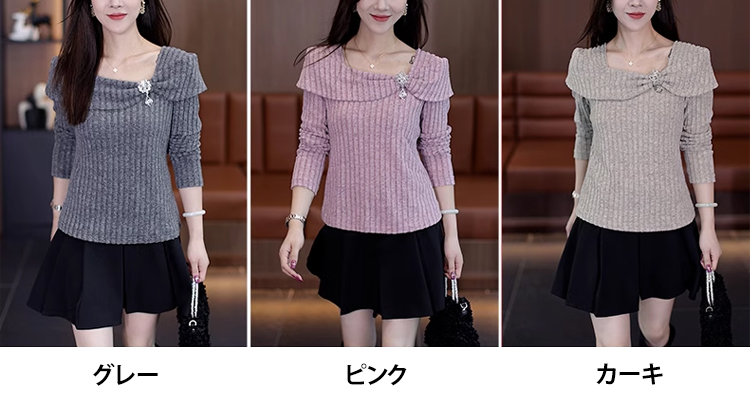 ビッグカラーオフショルダーニットトップス
